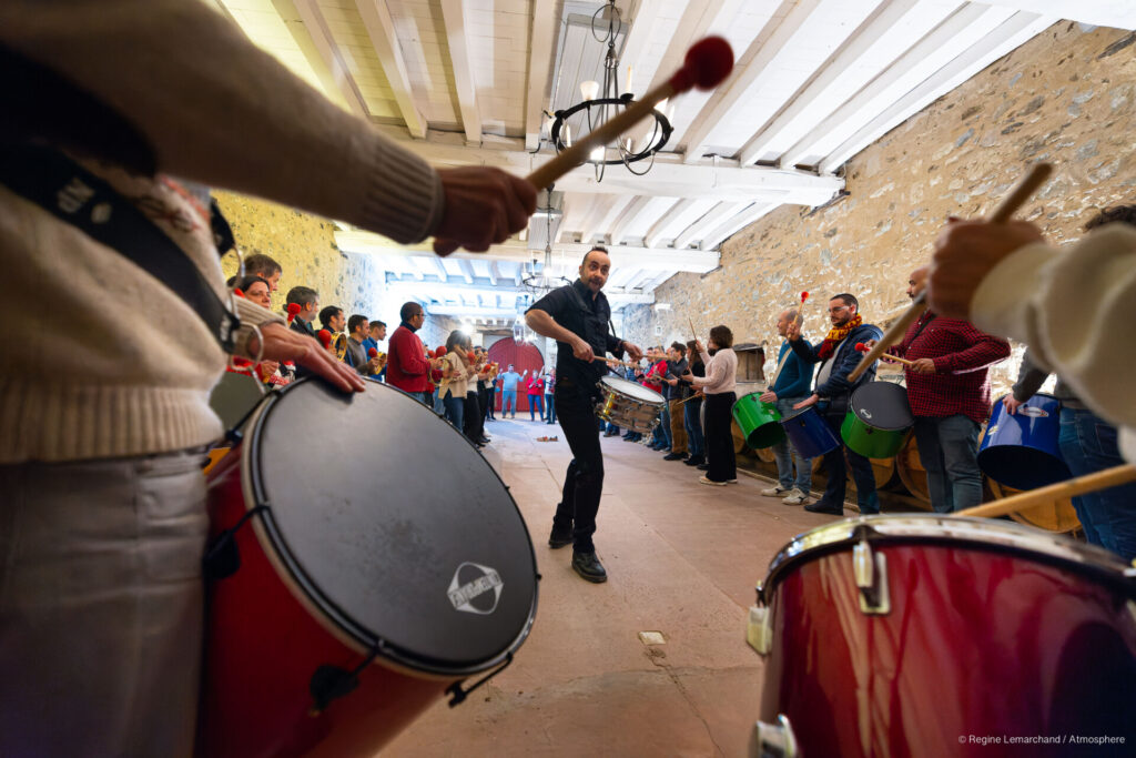 Dans le chai aux barriques, l’ambiance a immédiatement pris grâce à une batucada brésilienne menée tambour battant par deux animateurs passionnés. Très vite, les participants se sont initiés aux percussions et ont créé un rythme collectif énergisant – une expérience parfaite pour renforcer la cohésion d’équipe et briser la glace.
